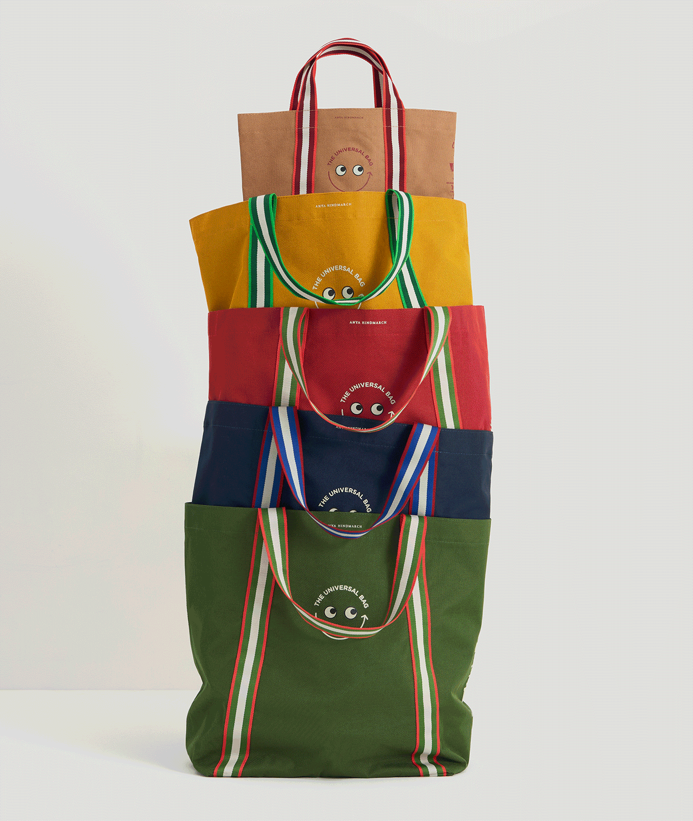 Launched in 2021 after two years of research and exploration, the Universal Bag is Anya Hindmarch’s most ambitious sustainability project to date - the next generation of reusable design. Building on the legacy of I Am Not A Plastic Bag and I Am A Plastic Bag, this recycled and recyclable shopping tote rescues post-consumer waste from landfill, promoting a culture of reuse. Durable, practical and beautifully designed.