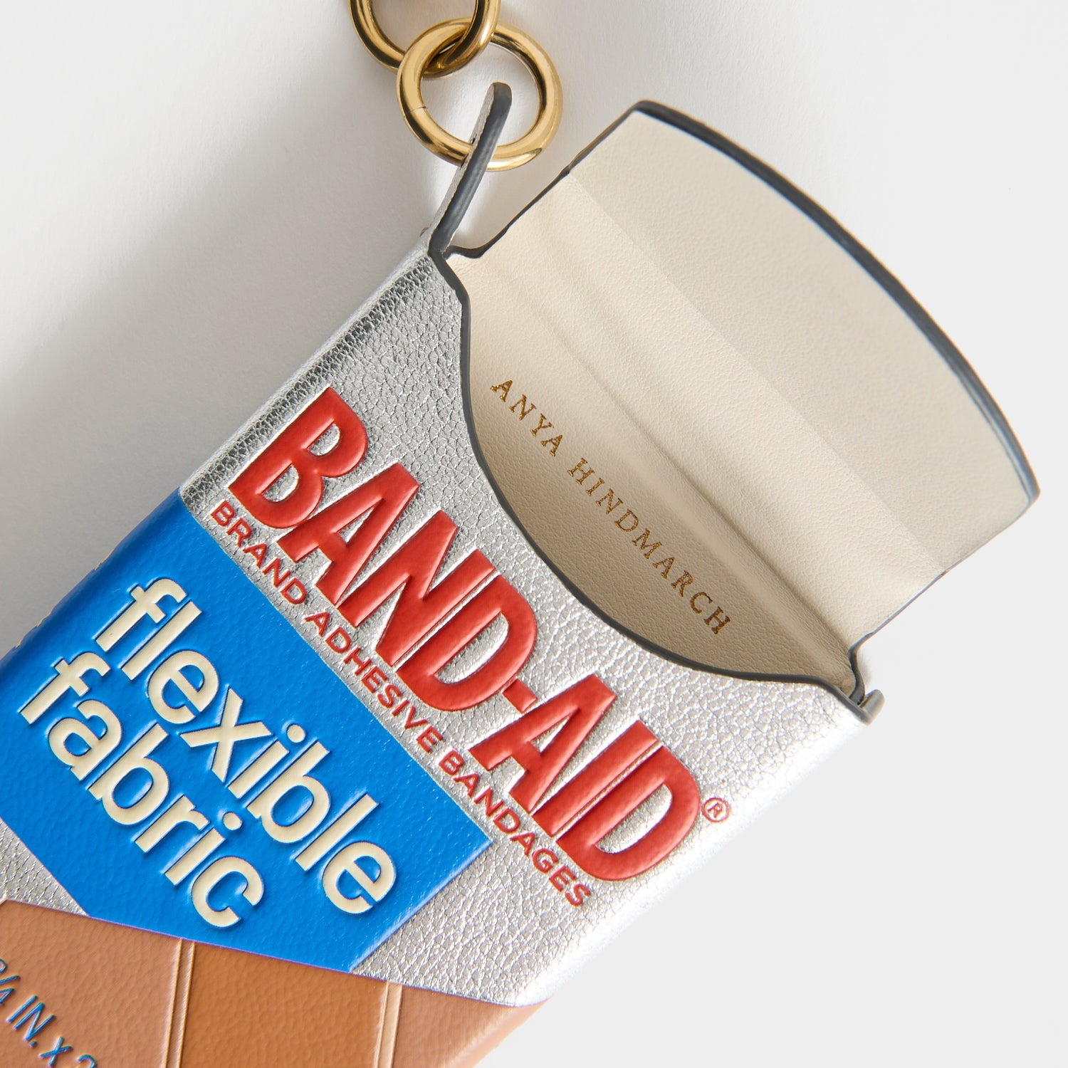 In silver capra leather with embossed and debossed artwork, a household essential becomes a thing of beauty, with which you can decorate your everyday tote. Our BAND-AID® Brand Charm can be added to your bag via the gold-tone clip – there’s also space inside for stowing an emergency lip balm, sweets or other small treasures.