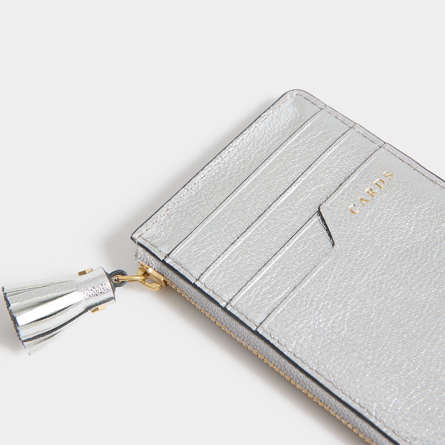 A fun take on an everyday essential, the BAND-AID® Brand Zip Card Case features artwork from the household staple. It’s crafted from silver capra leather, which has been certified by the Leather Working Group, and has a tassel-zippered pocket for loose change, and four labelled slots for credit, debit and loyalty cards. Note the tiny golden bow on the back.