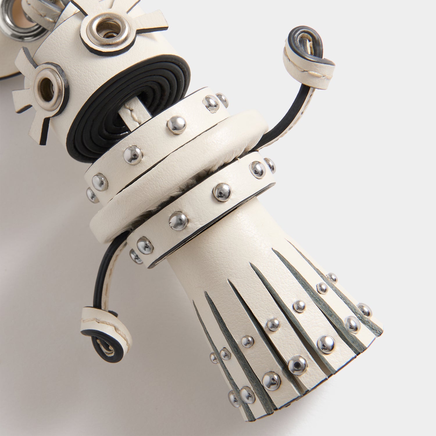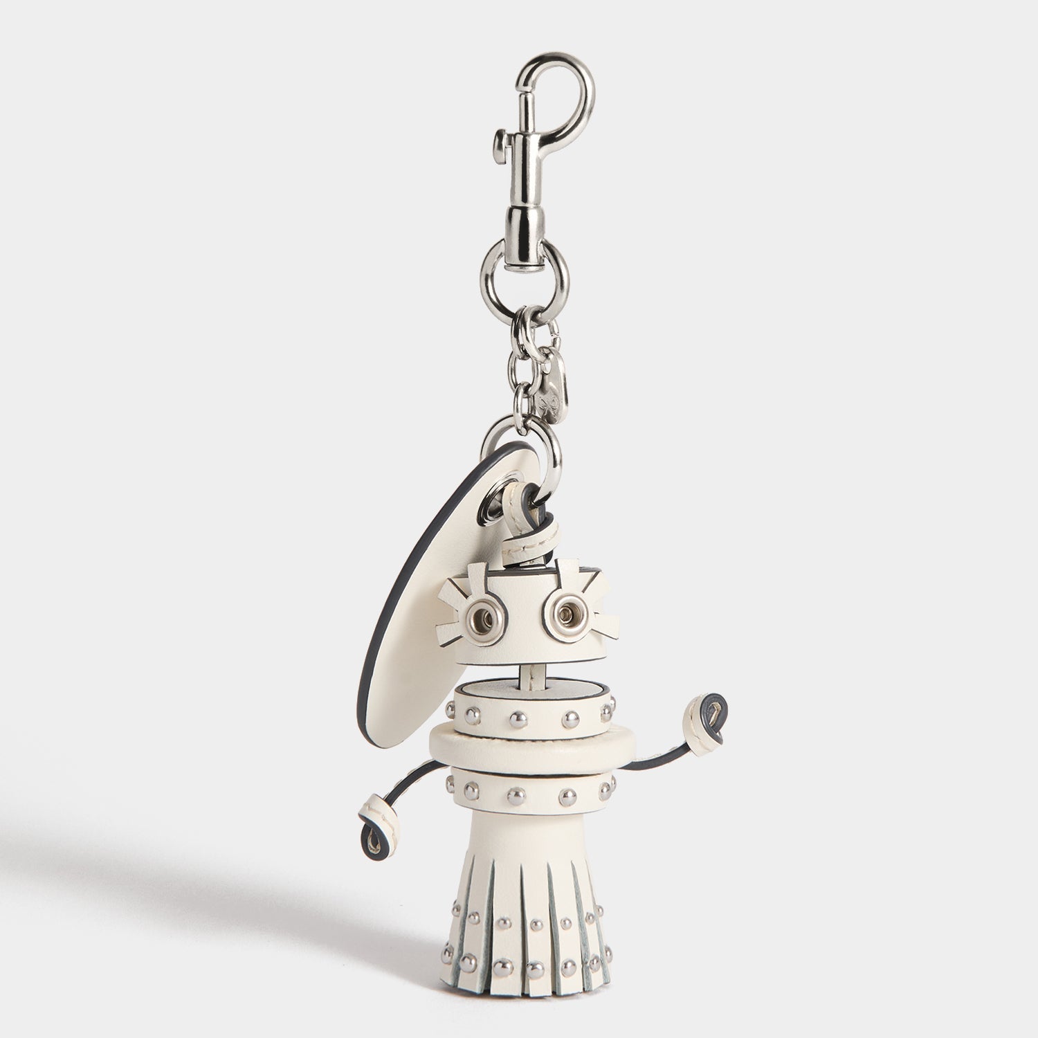 Our Bride Charm makes such a fun gift for brides-to-be. Crafted from ivory satin leather, it has a silver-studded ‘gown’, knotted arms and riveted eyes, as well as a tag that can be personalised with a message, date or name of your choosing. It also features a silver-tone clip, for attaching to a bag.