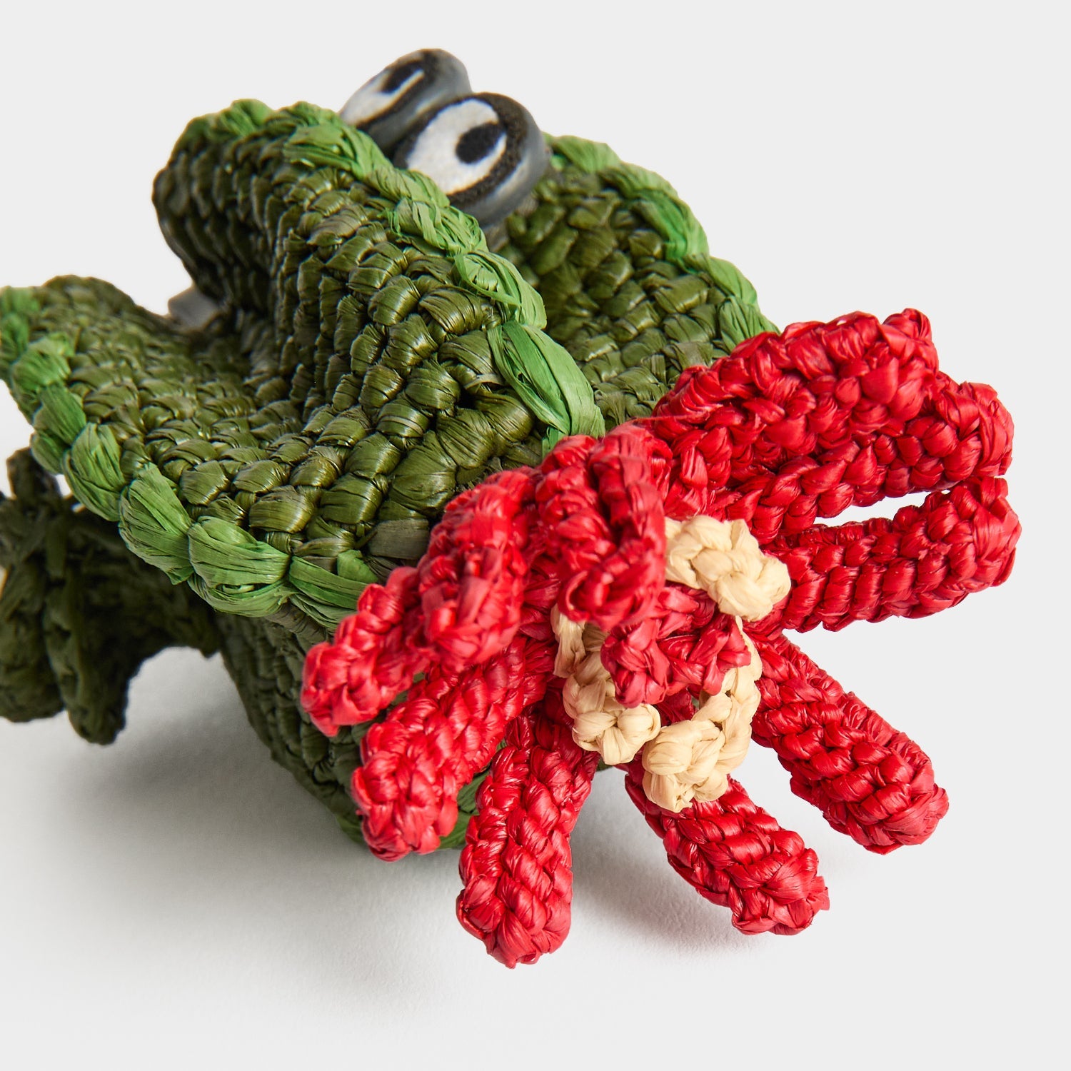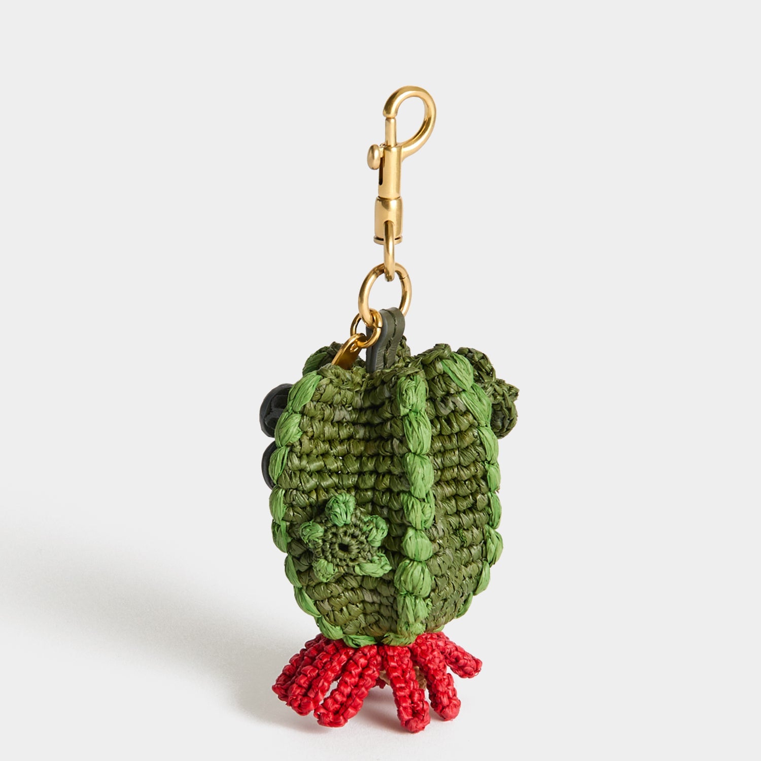 Colour, craft and a touch of fun, our Cactus charm is the perfect piece to attach to your bag, or key ring via the gold-tone clip, as a standalone statement, or part of a charm collection. Carefully woven in raffia using artisan techniques, the cactus features a bold pink flower and our signature eyes.