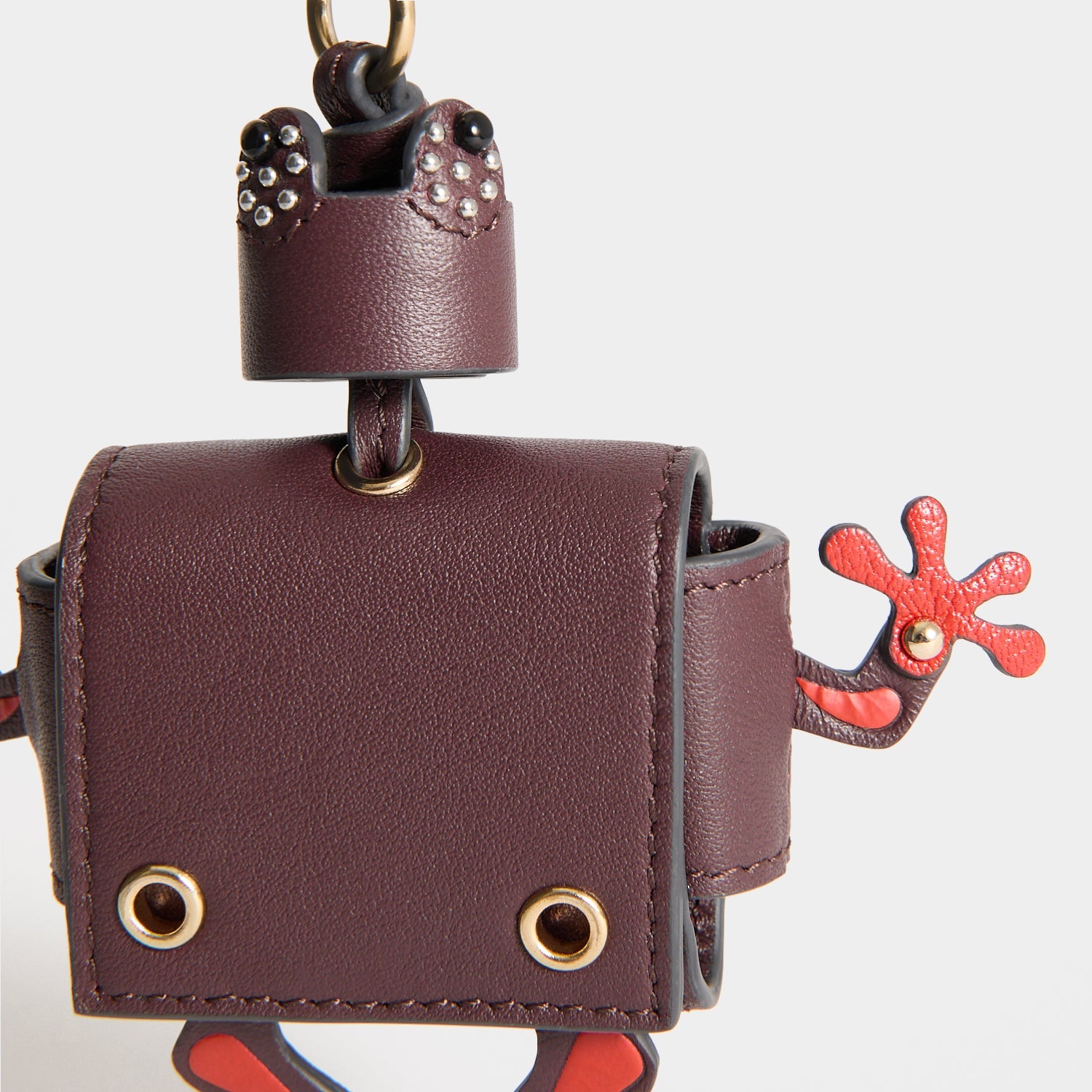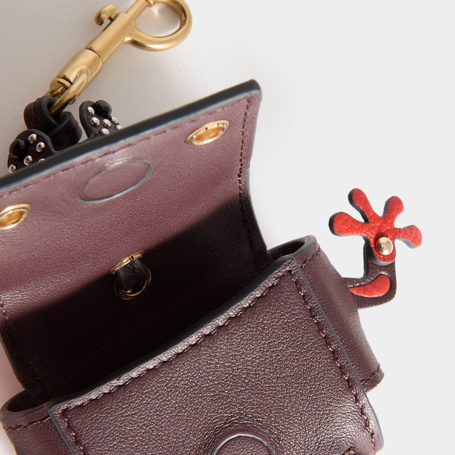 No ordinary earphone case, this one is frog-shaped and doubles up as a playful bag charm. It is crafted from claret-hued nappa leather and finished with beaded, studded eyes and articulated hands and feet, with space inside for precious earpods.