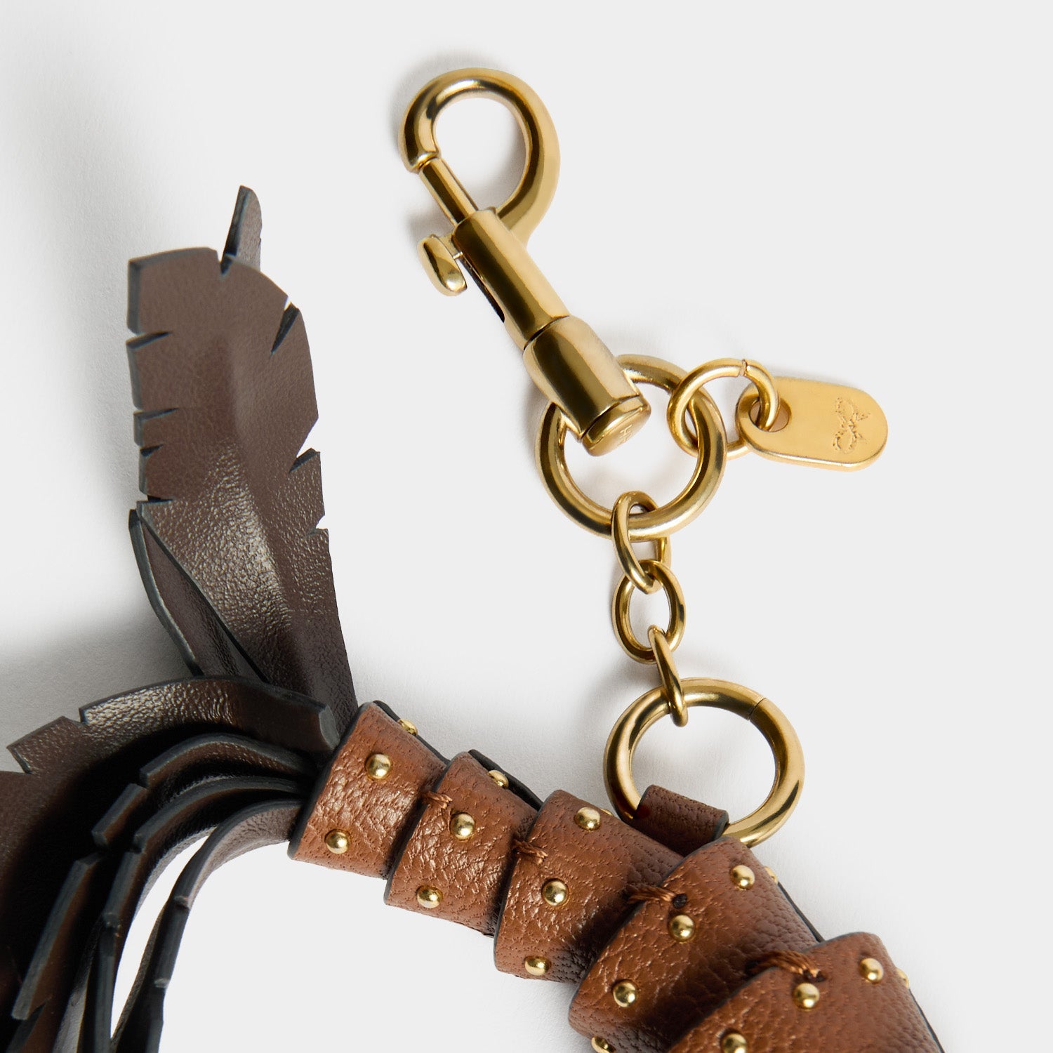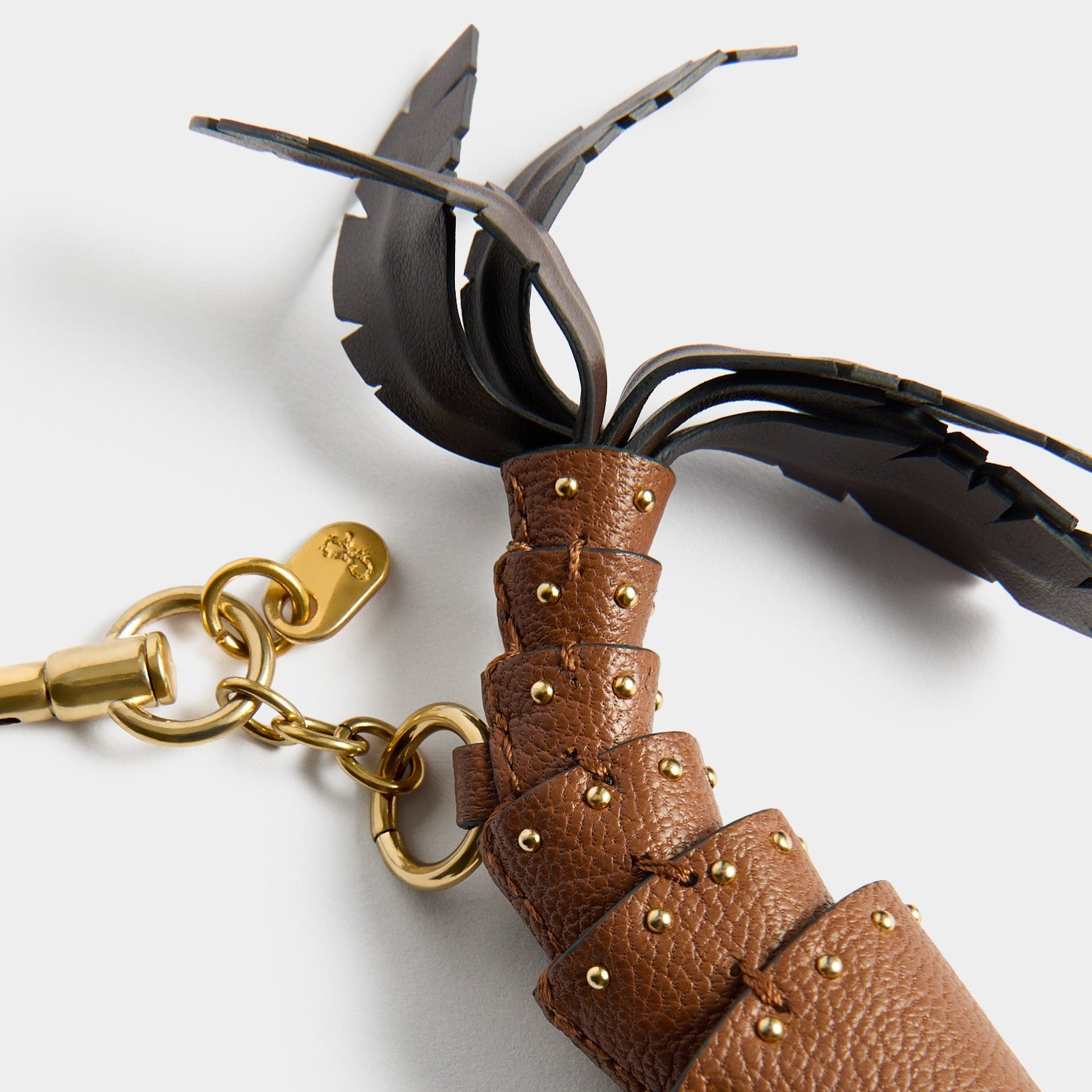 Bring a touch of the tropics to your favourite tote with our Palm Tree Charm. It's crafted from cedar-coloured shiny capra leather, from its articulated trunk to its intricate leaves, and embellished with tiny golden studs and a matching clasp.
