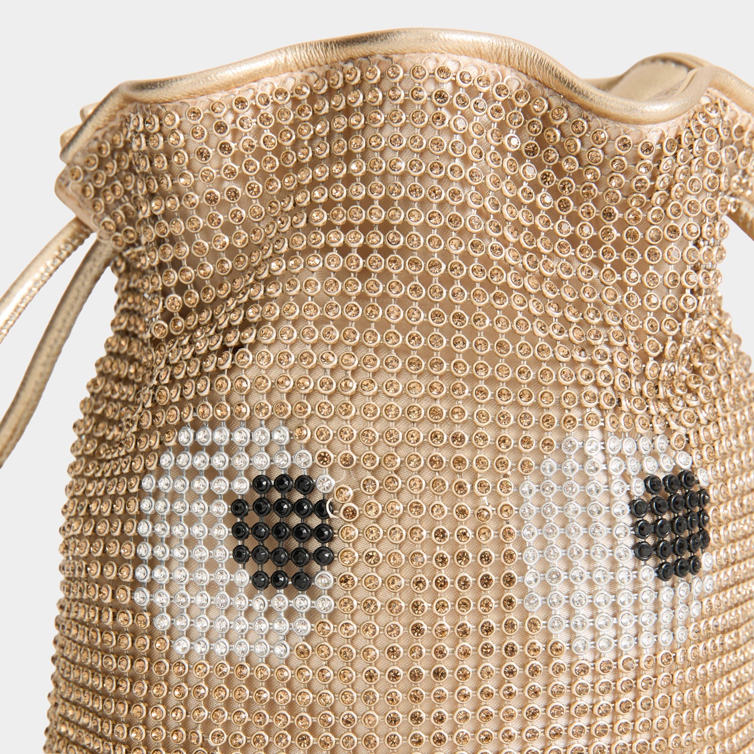 No ordinary evening bag, our Eyes Drawstring Pouch is made from crystal-encrusted mesh and decorated with a pair of shimmering eyes. Keep evening essentials inside and secure it via the metallic leather drawstrings – you can carry it this way, too, or by the detachable chain strap.