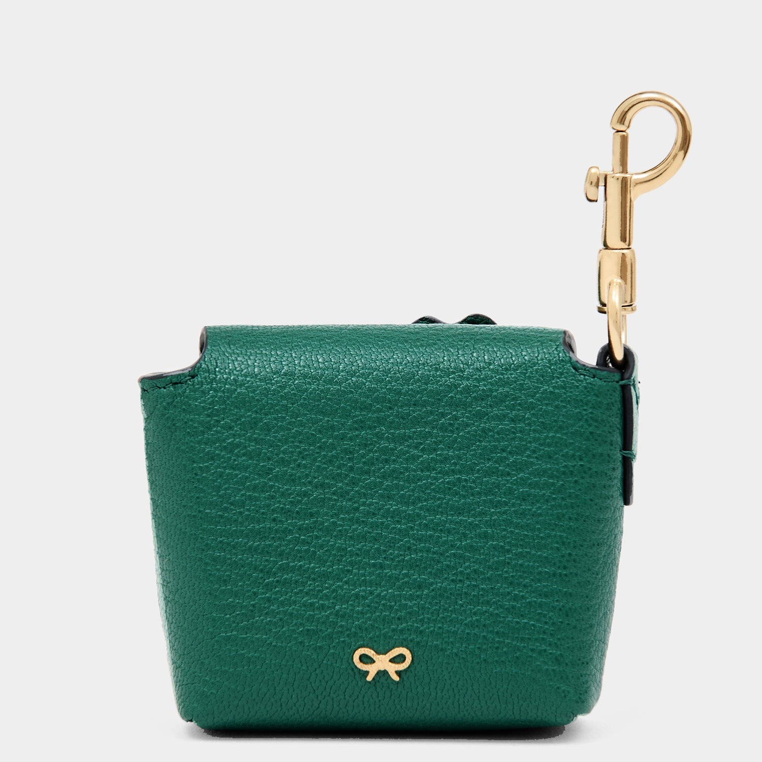 Let Woodstock keep an eye on your ear pods with this capra leather case, part of the Peanuts x Anya Hindmarch capsule collection. It is made from bottle-green capra leather, decorated with Peanuts’ famous yellow bird as he prepares for an expedition with the Beagle Scouts, and fitted with a gold-tone clasp for clipping onto the inside or outside of a bag.