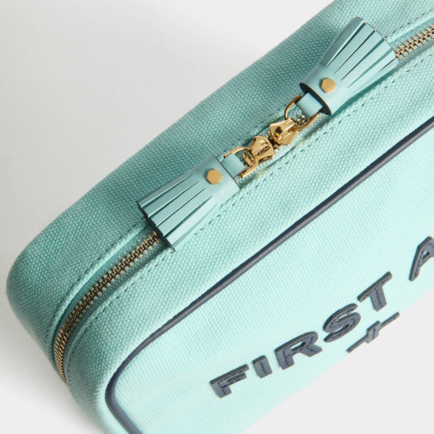Keep your first aid essentials organised with our sleek cotton-canvas First Aid Pouch. Inspired by an antique piece from the Boots archive and created for our Anya Hindmarch X Boots concept store, this version zips open to reveal careful organisation inside – a slip pouch and elastic fastenings. In fresh blue with gold-tone hardware, inside, you’ll find our monogrammed lining and a leather logo patch.