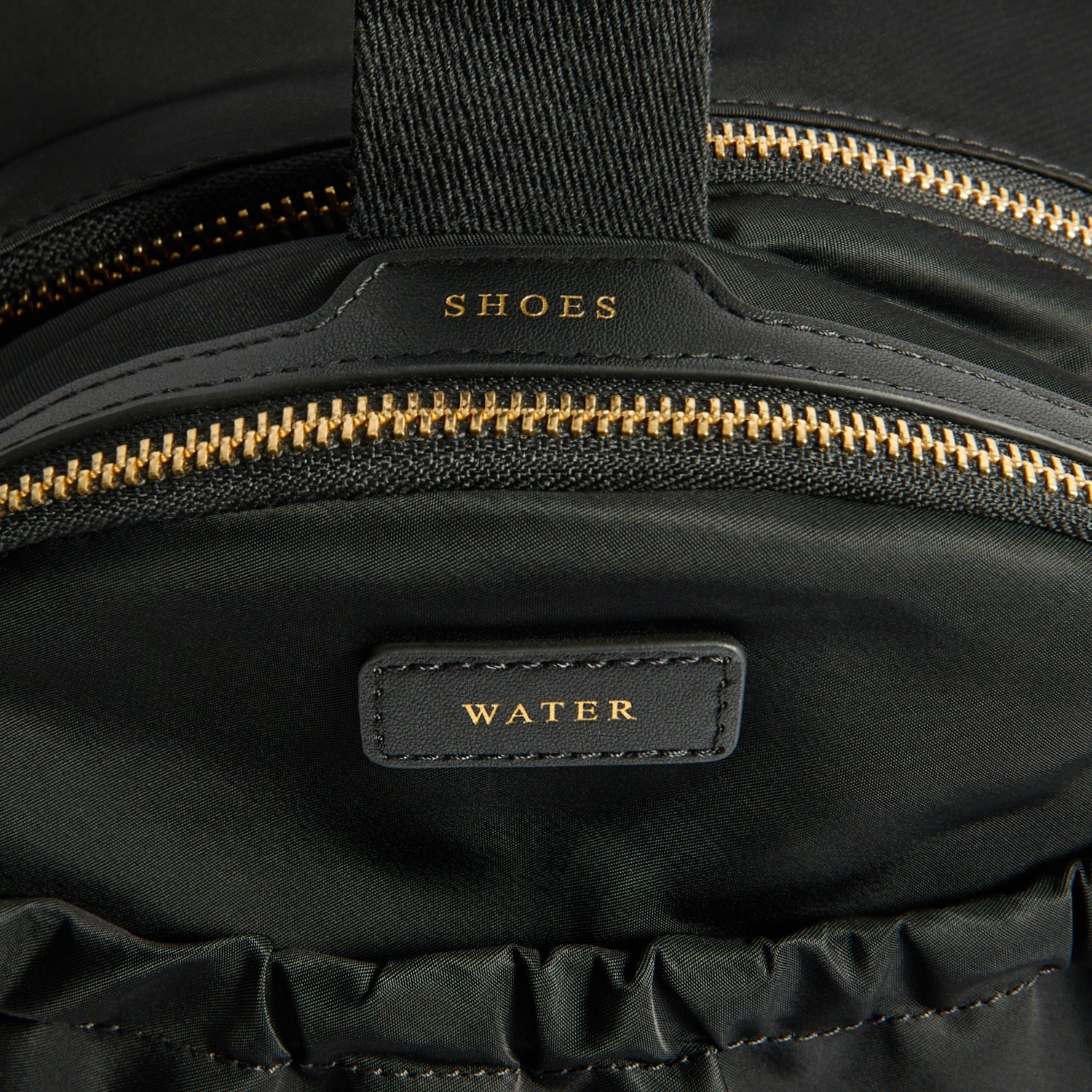 Please note the shoe bag section and removable workout kit bag are water resistant and the fabric has a specially formulated antimicrobial treatment to minimise odours.