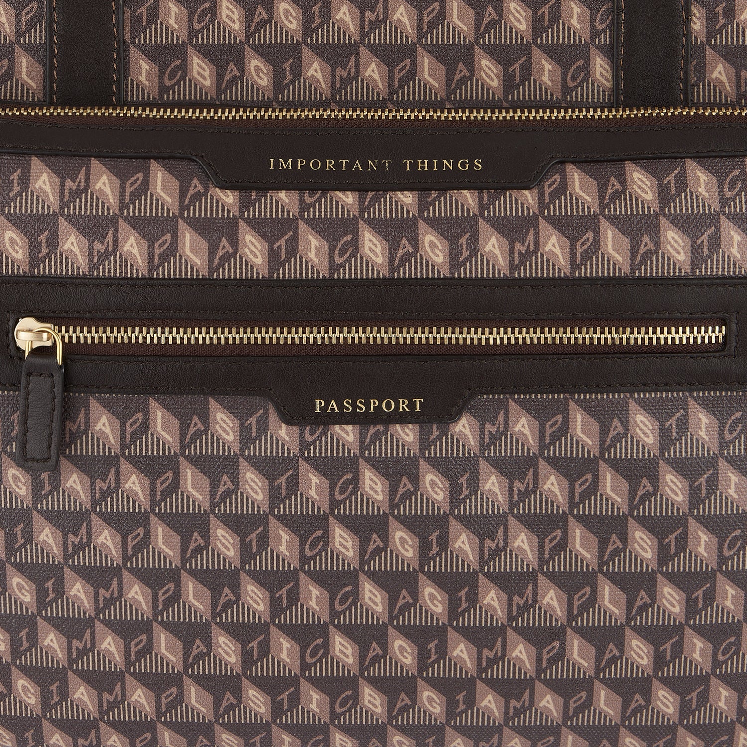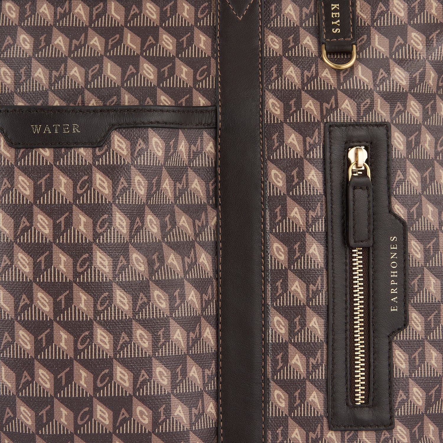 The I Am A Plastic Bag In-Flight tote has labelled sections for everything you’ll need on your travels. It’s crafted from an innovative, coated canvas that’s made from recycled plastic bottles. Your passport, important travel documents, charger and earphones all have their own dedicated pockets, and there’s space for a water bottle, a fob for keys, and a removable clear pouch for liquids. It also has a convenient sleeve to pull over the back of a luggage trolley.