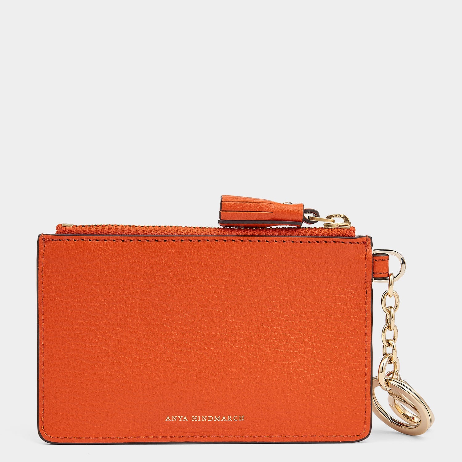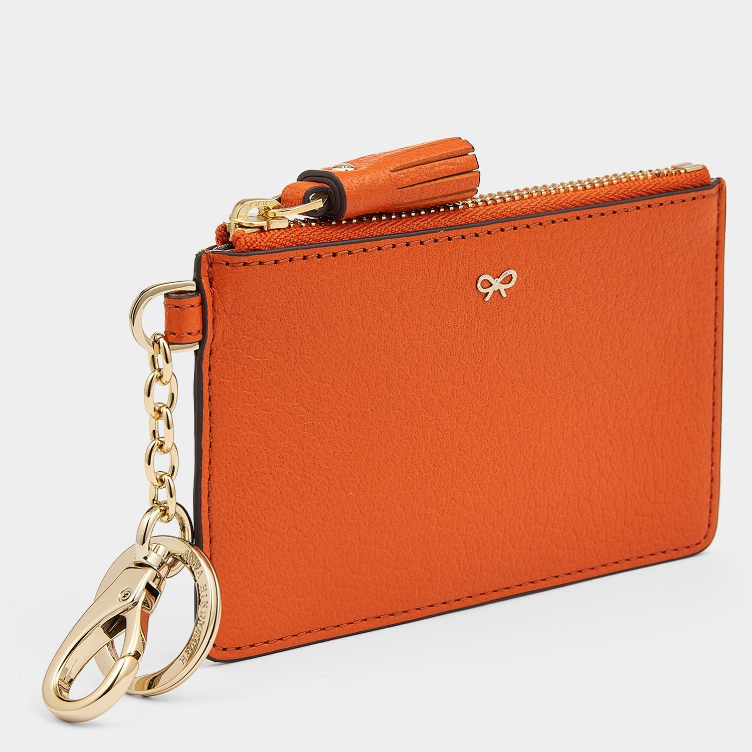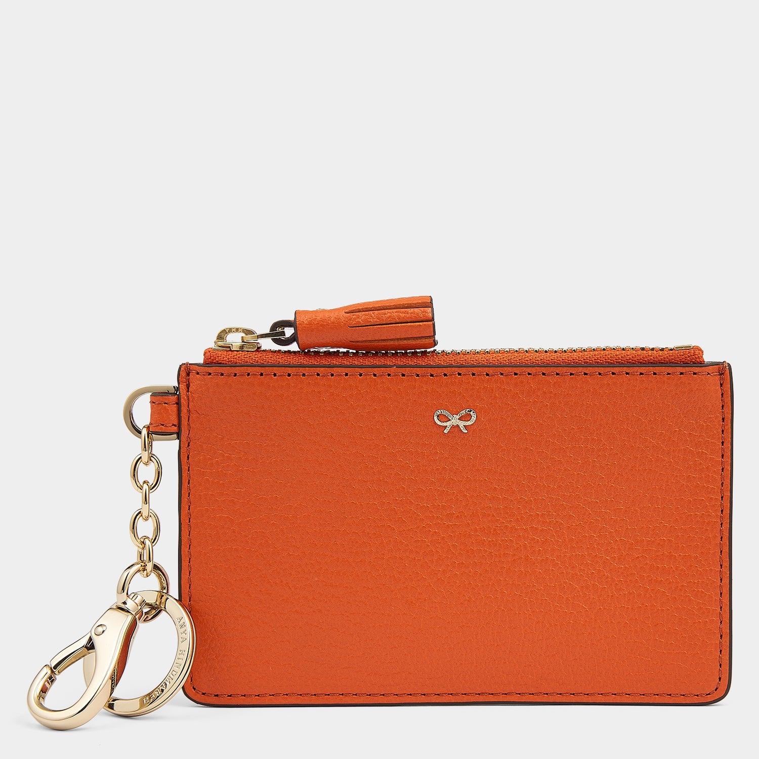 A keyring with an attached leather purse for everything from coffee coins to headache pills. The purse can be embossed with your own choice of words.