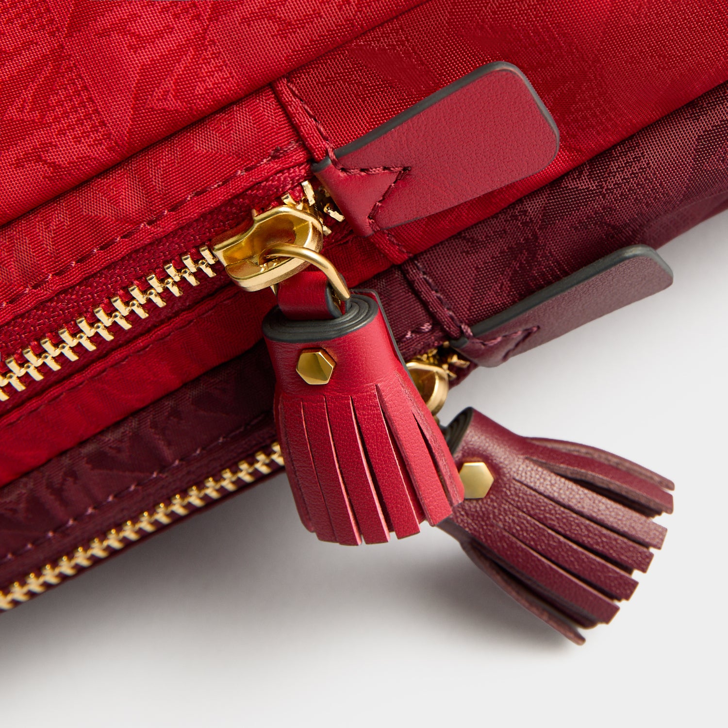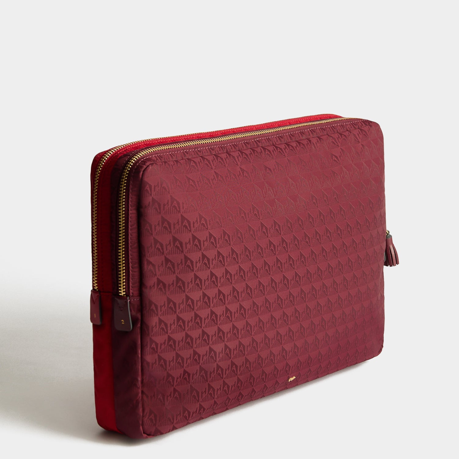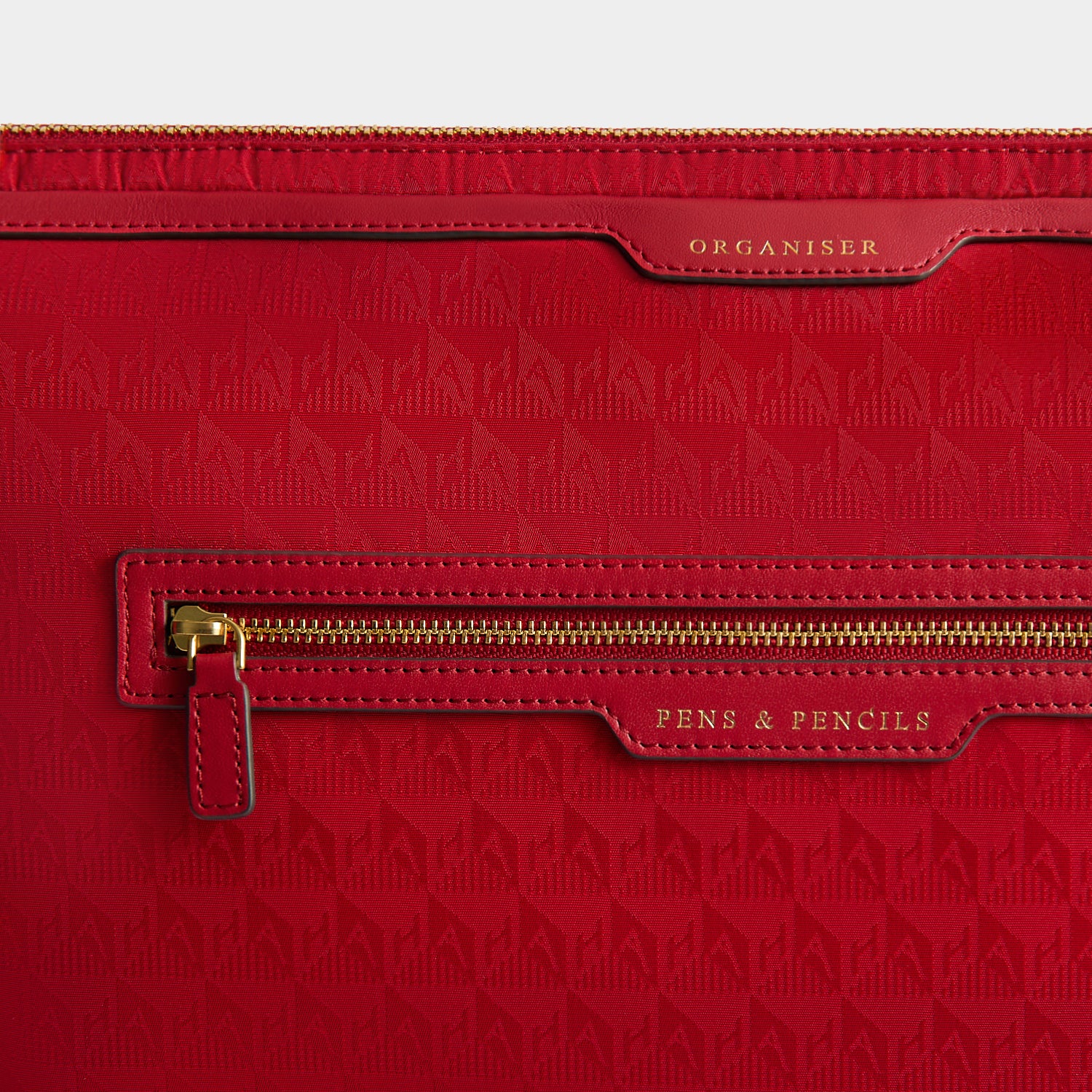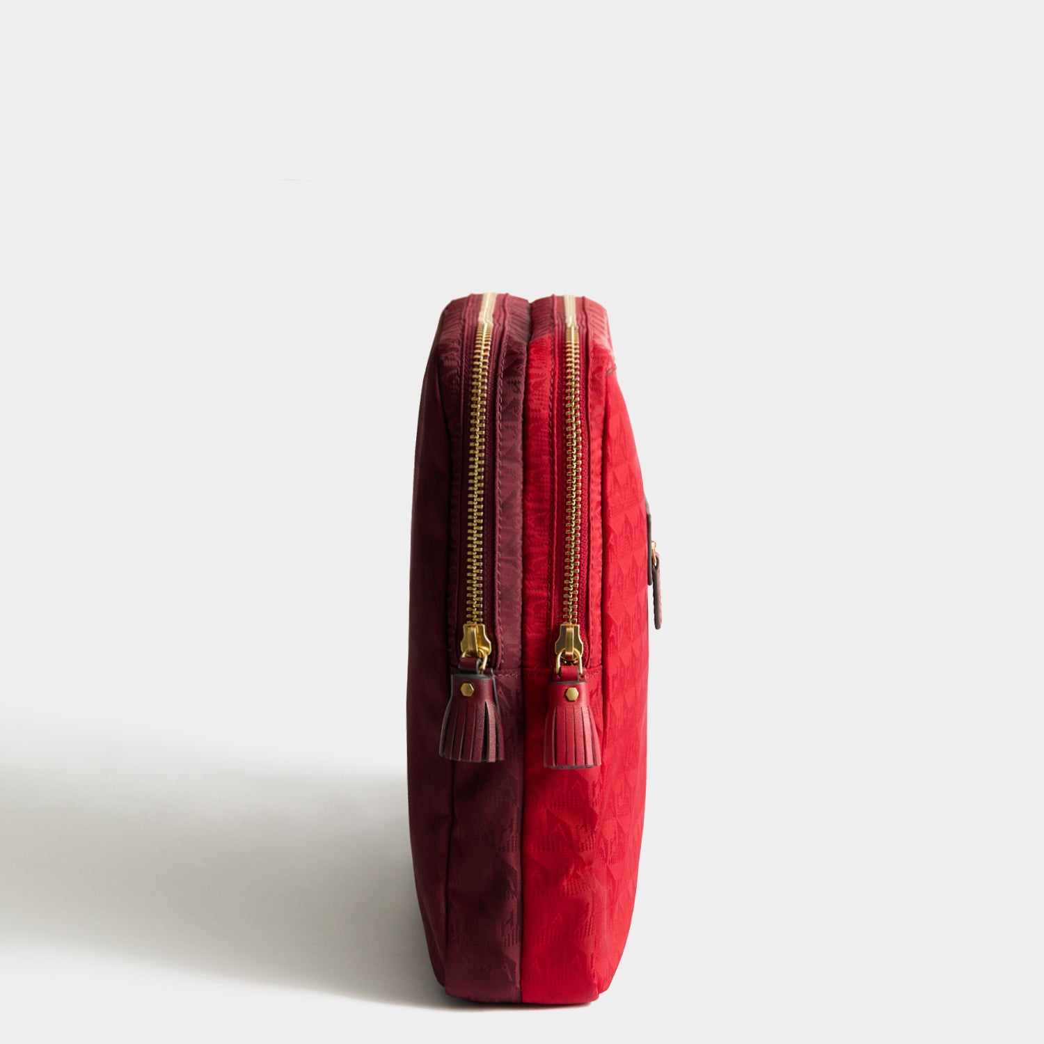 The Double Laptop Organiser is a meeting essential. Crafted from AH-monogram nylon, it has two tassel-zippered compartments – one for a laptop and the other for A4 documents and notes. Keep pens and pencils in the outer zip pocket, which is labelled accordingly.