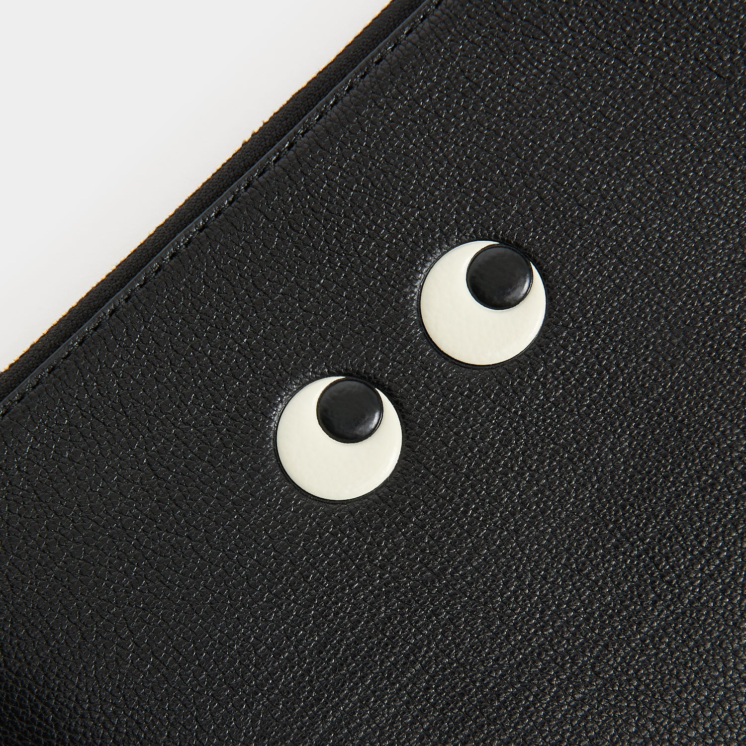External features: Eyes detail, gold-tone zip with leather zip pulls