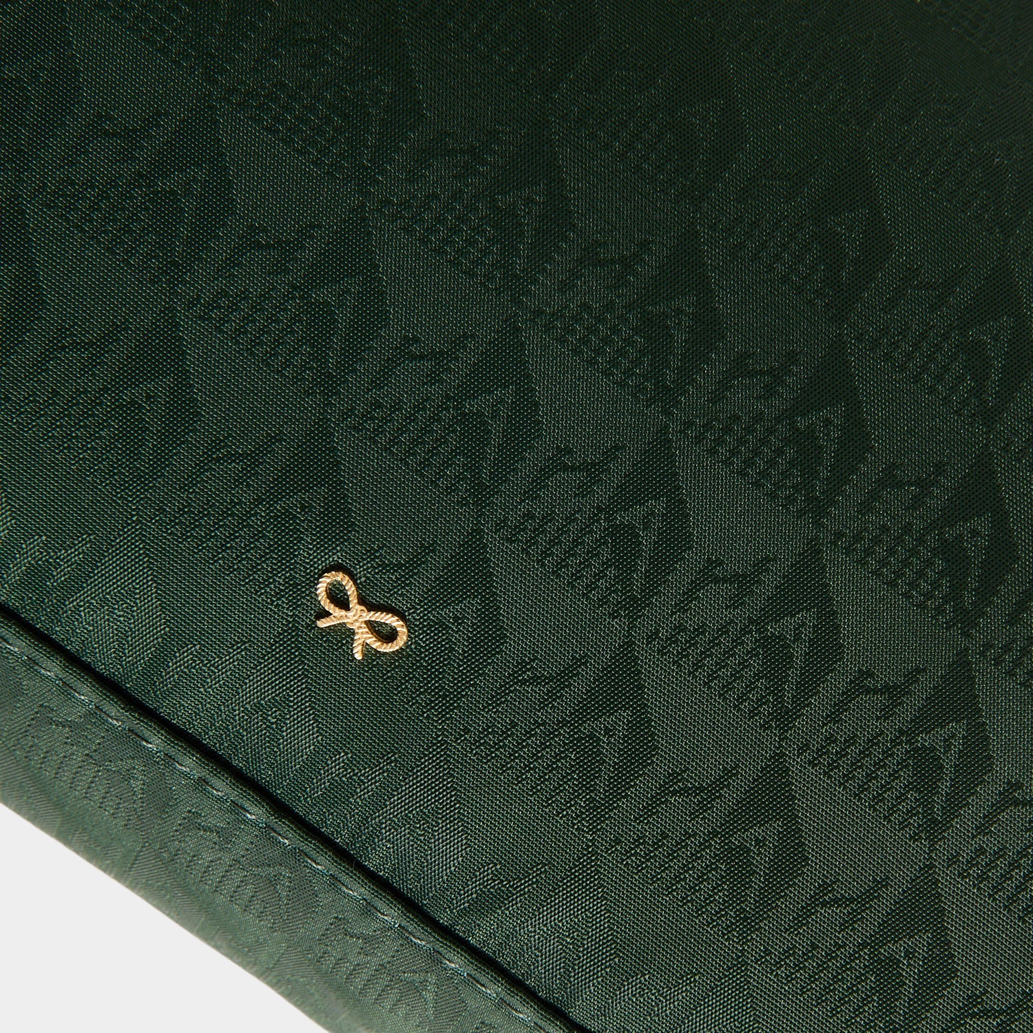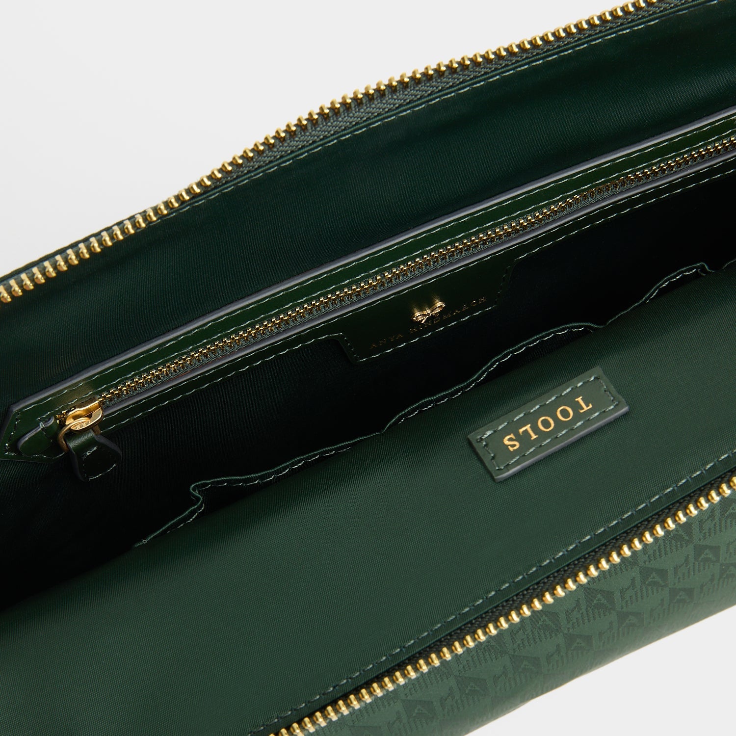 Internal features: Embossed fabric lining, patent leather patch logo, Anya Hindmarch gold bow