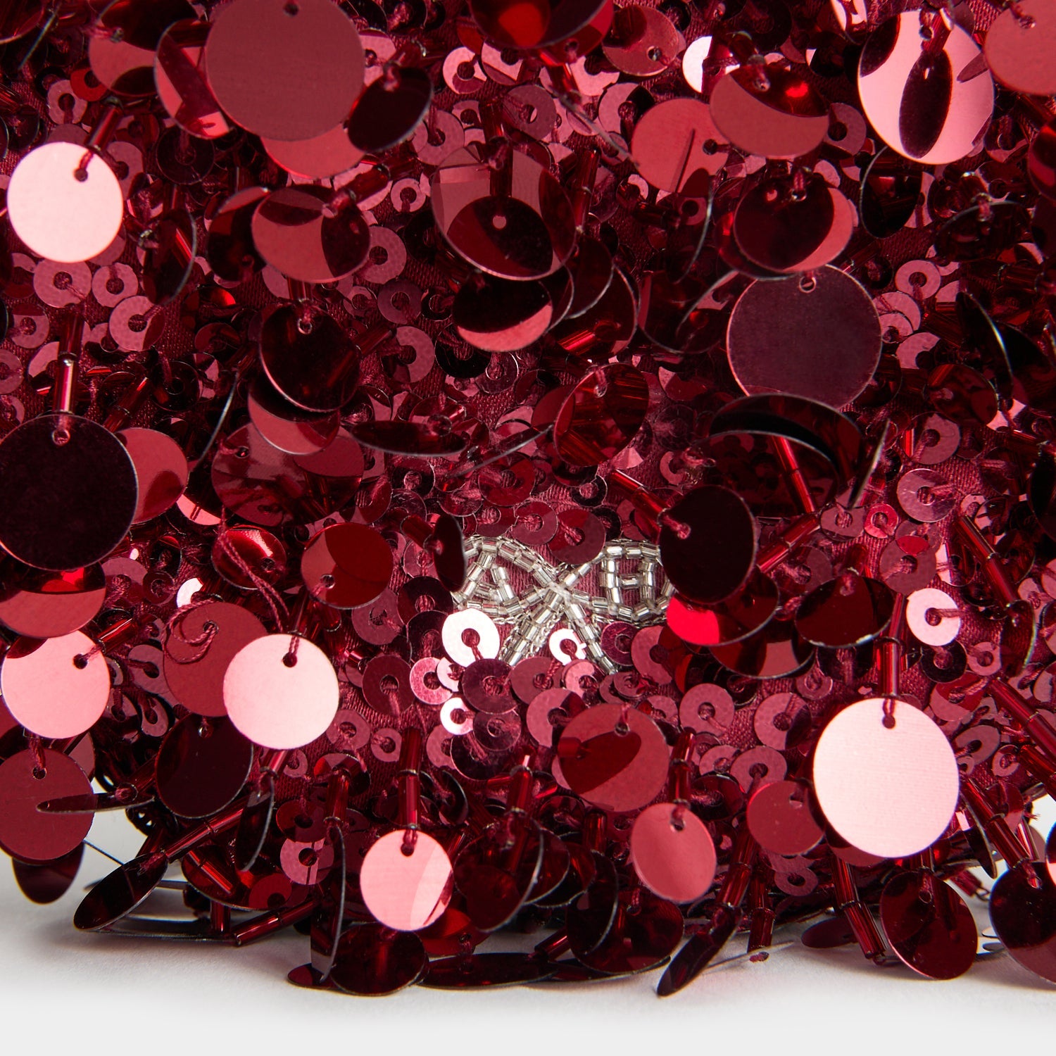 - DESCRIPTION- Our Ladybird Mini Bucket will be a characterful addition to cocktail attire. It’s constructed from oxblood-coloured satin, saturated with sequins and beads, and appliquéd with crystal-encrusted leather eyes. Tote it by the beaded handles, keeping your phone, lipstick, cardholder and keys inside. - Item number: 5050925201193