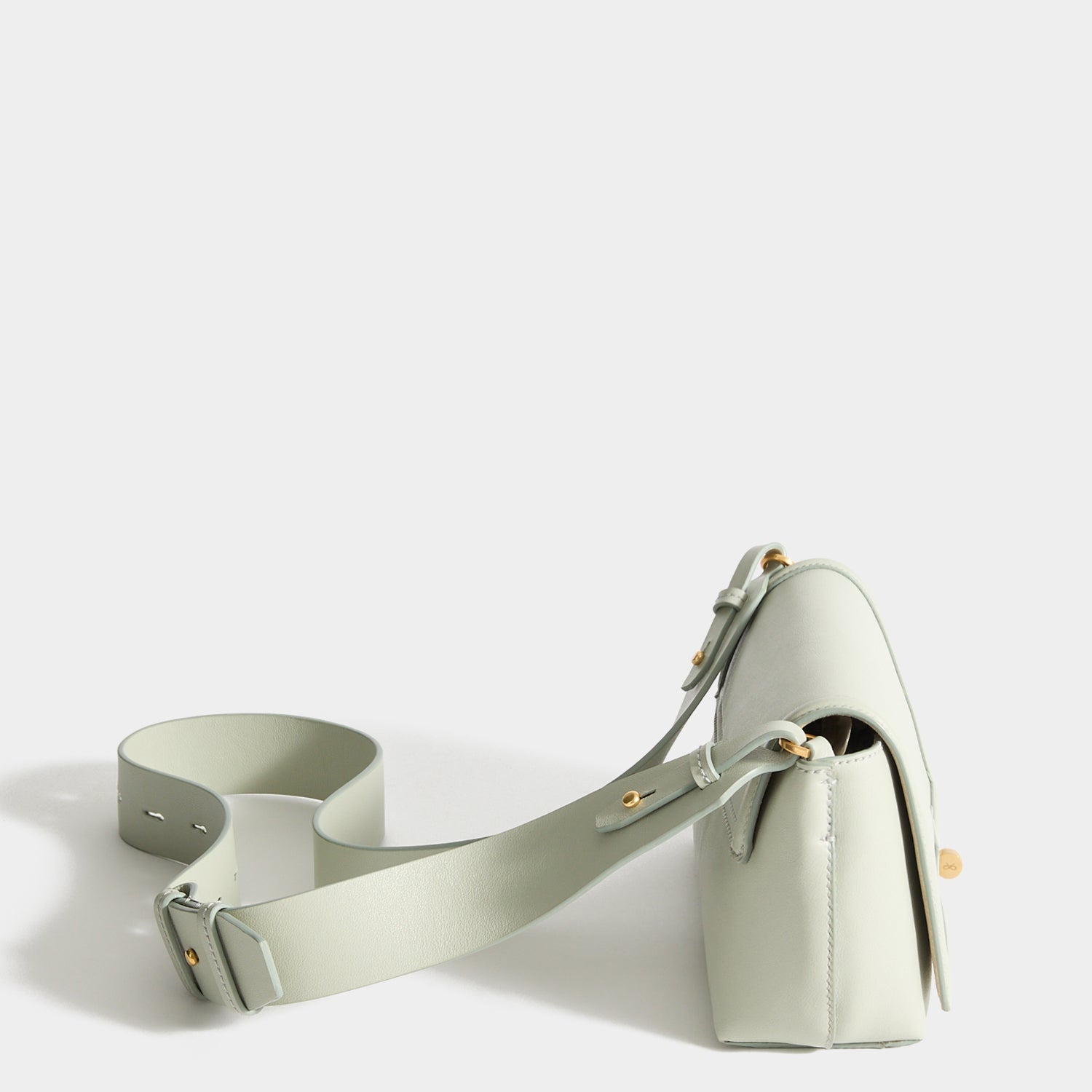 If you appreciate the fine craftsmanship that goes into the Mortimer bag, you'll love this easy, everyday, cross-body version. It is handmade in Florence from iceberg-green silky calf leather, rated Gold by the Leather Working Group, and finished with gold-tone hardware – including the bow and logo-embossed turn-lock, a Mortimer signature. It can be carried by the top handle or adjustable long strap, or you can remove the strap entirely and use it as a clutch. Stow your phone, wallet, and glasses inside, using the single slip pocket for your most-used card.