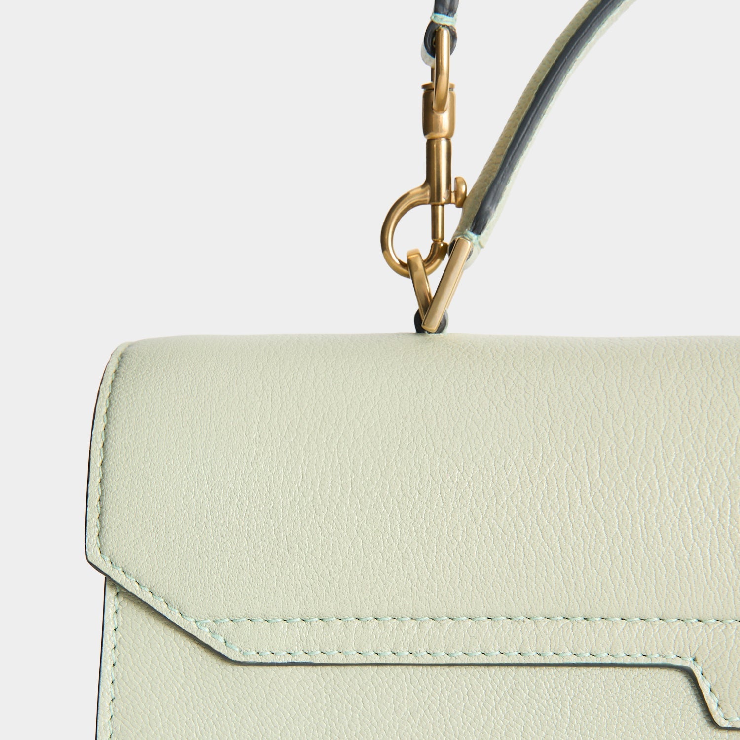 Inside, the Mortimer retains all of the impeccable organisation it's known for. Nicknamed the 'filing cabinet', it features several compartments – one zipped, another with a handmade gold 'lip', plus pockets for your phone, cards, earphones and pen – all lined in contrasting Dark Celadon satin leather and with the Peanuts x Anya Hindmarch embossed branding. The bag is secured via a bow and logo-embossed twist-lock.