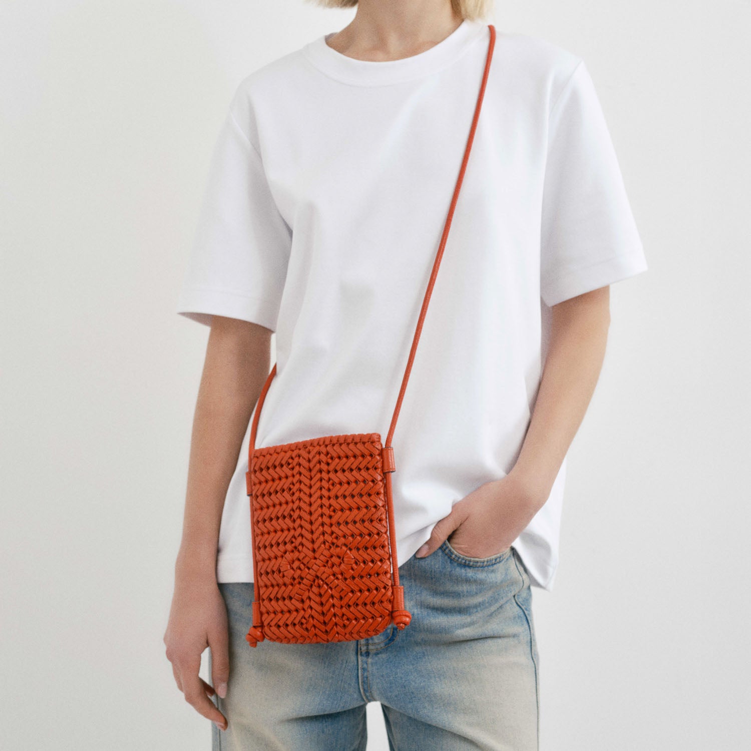 Just like each piece in the Neeson collection, the Cross-Body Pouch is a feat of craftsmanship. It is handwoven from tomato-red shiny capra leather over technical mesh to create a strong but lightweight ‘basket’, and takes a total of six hours to make. It has a magnetic closure and single slip pocket, which is ideal for your most-used card.
