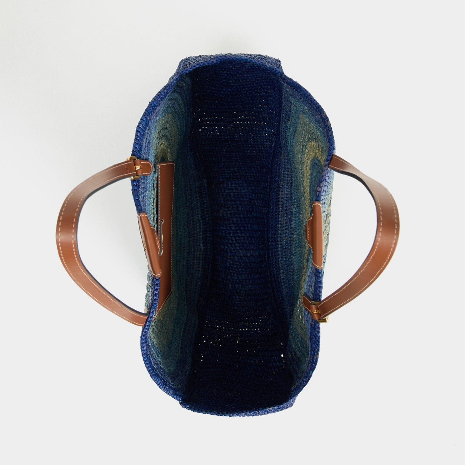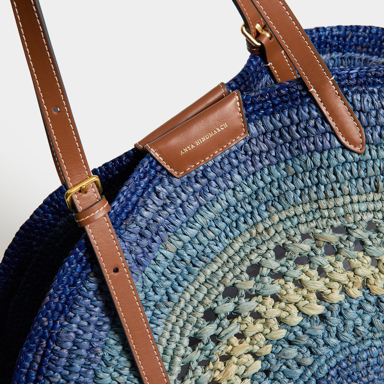 Our Round Bow Tote is the perfect size for beach-day essentials, including your phone, sunglasses, sun cream and current book. It's woven from blue raffia with a dégradé design centred by trademark bow, and finished with adjustable eco-leather shoulder straps and a magnetic closure. Keep cards in the slip pocket, inside.
