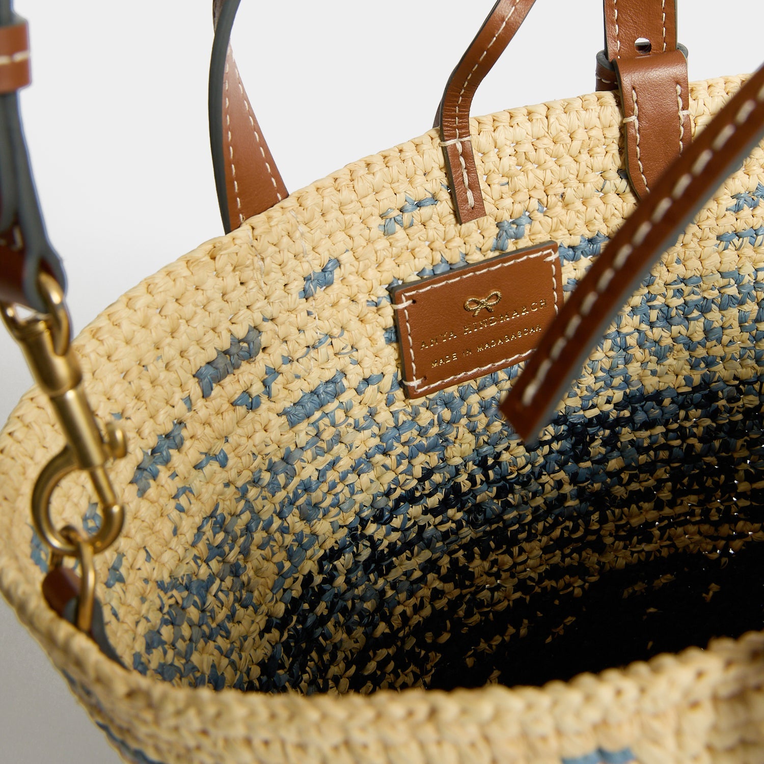 Materials: Natural Raffia, Smooth Leather
