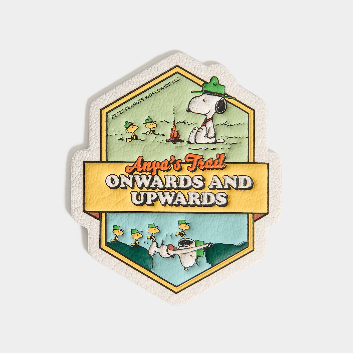 Created as part of our Peanuts x Anya Hindmarch capsule collection, this leather sticker features an illustration of Snoopy and the Beagle Scouts alongside our Anya's Trail insignia, featuring the in-person trail you can follow around our London stores. A special-edition keepsake that is perfect for Snoopy (and Anya) fans – add it to phones, notebooks, laptops and more.