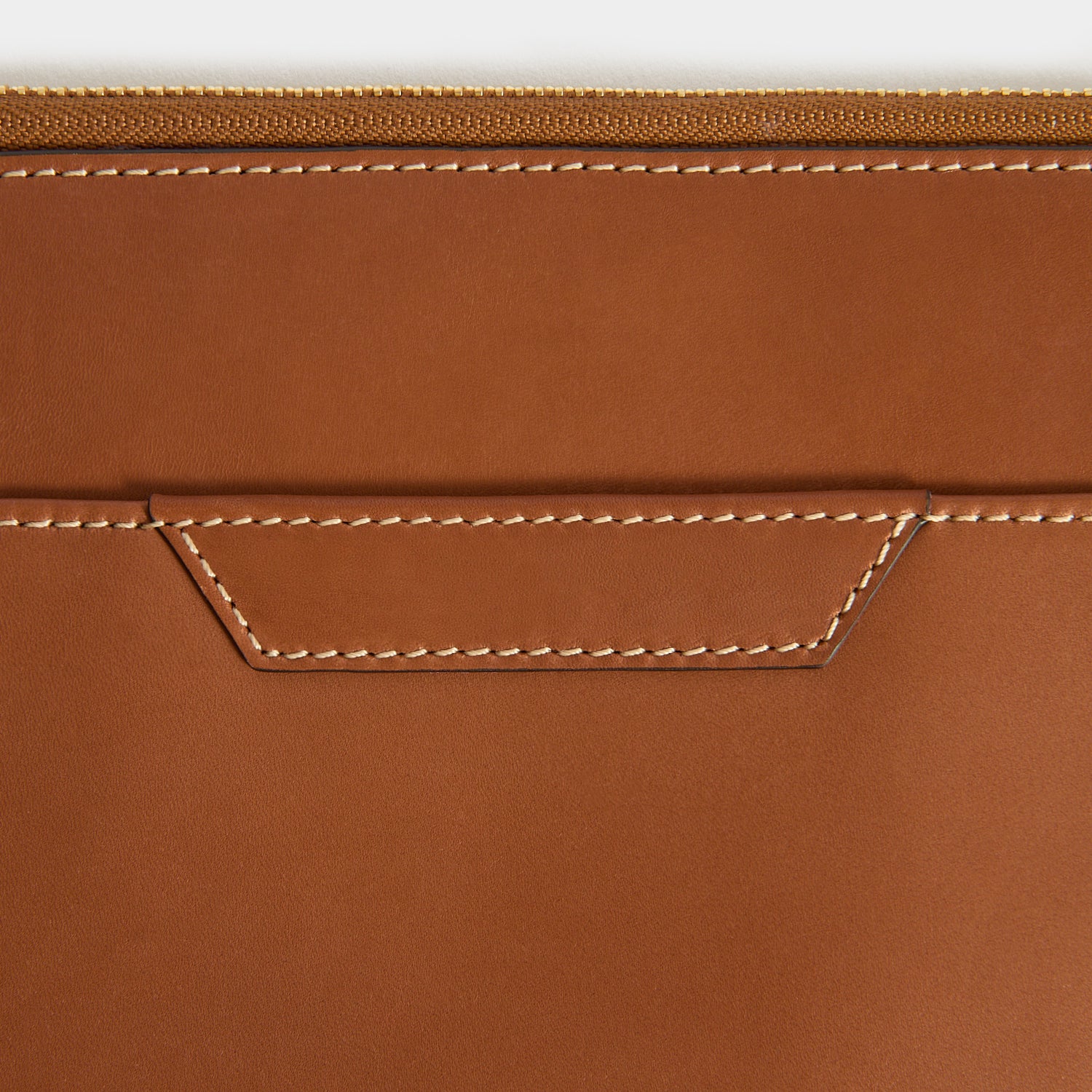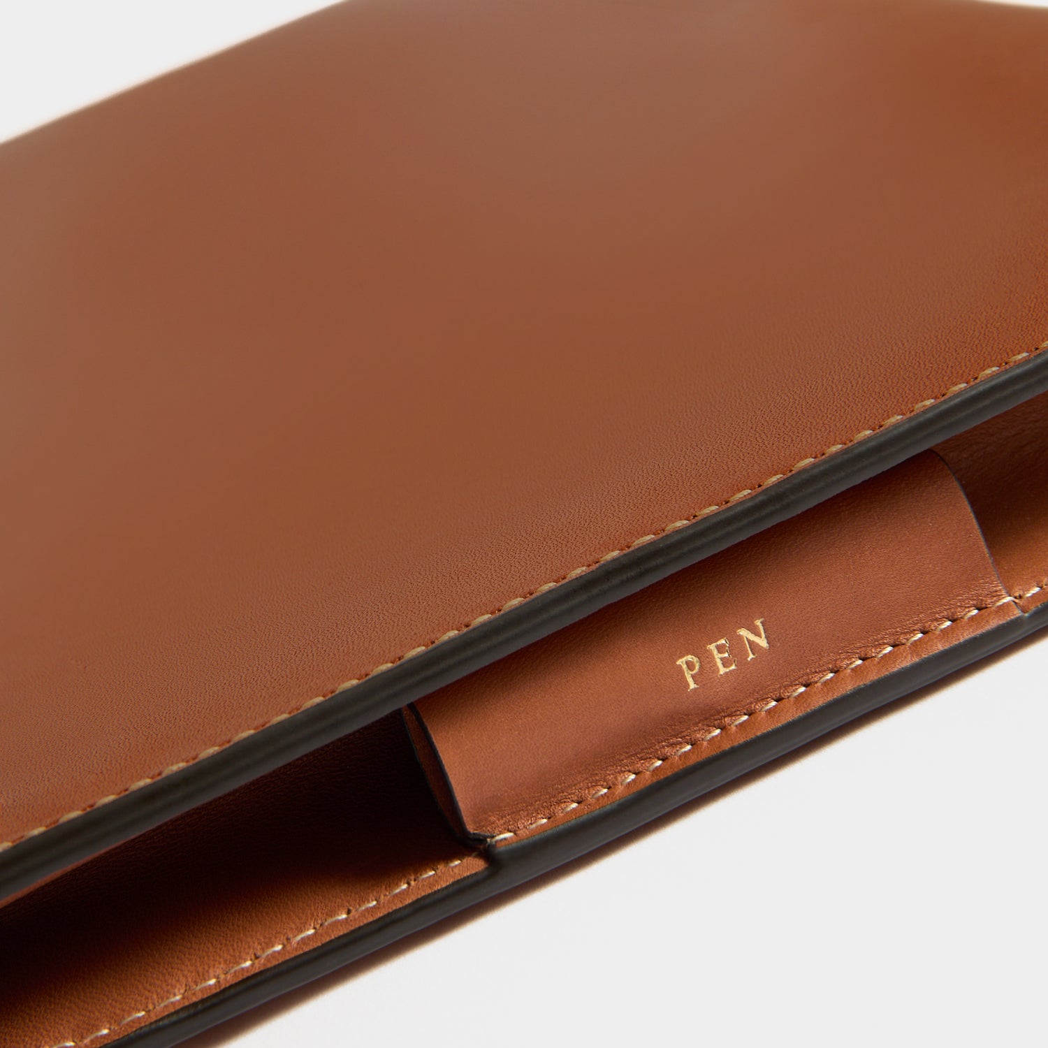 Keep your remote office organised on the go with our sleek bespoke lined leather Tech Case. It arrives with sections for a laptop and papers, plus a discreet leather pen loop. Make it yours (or theirs) with an embossed name, initials, drawing or handwritten message.
