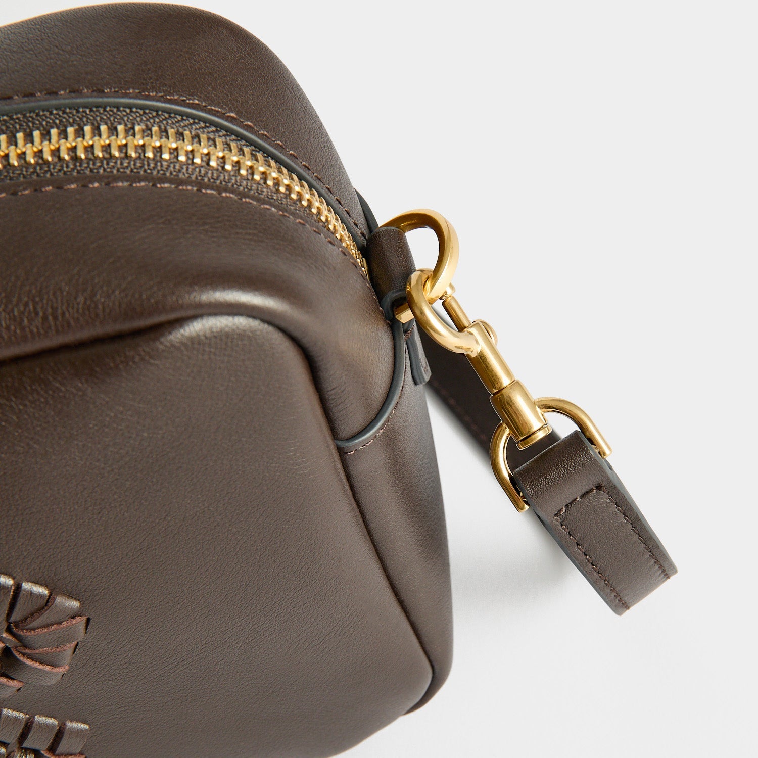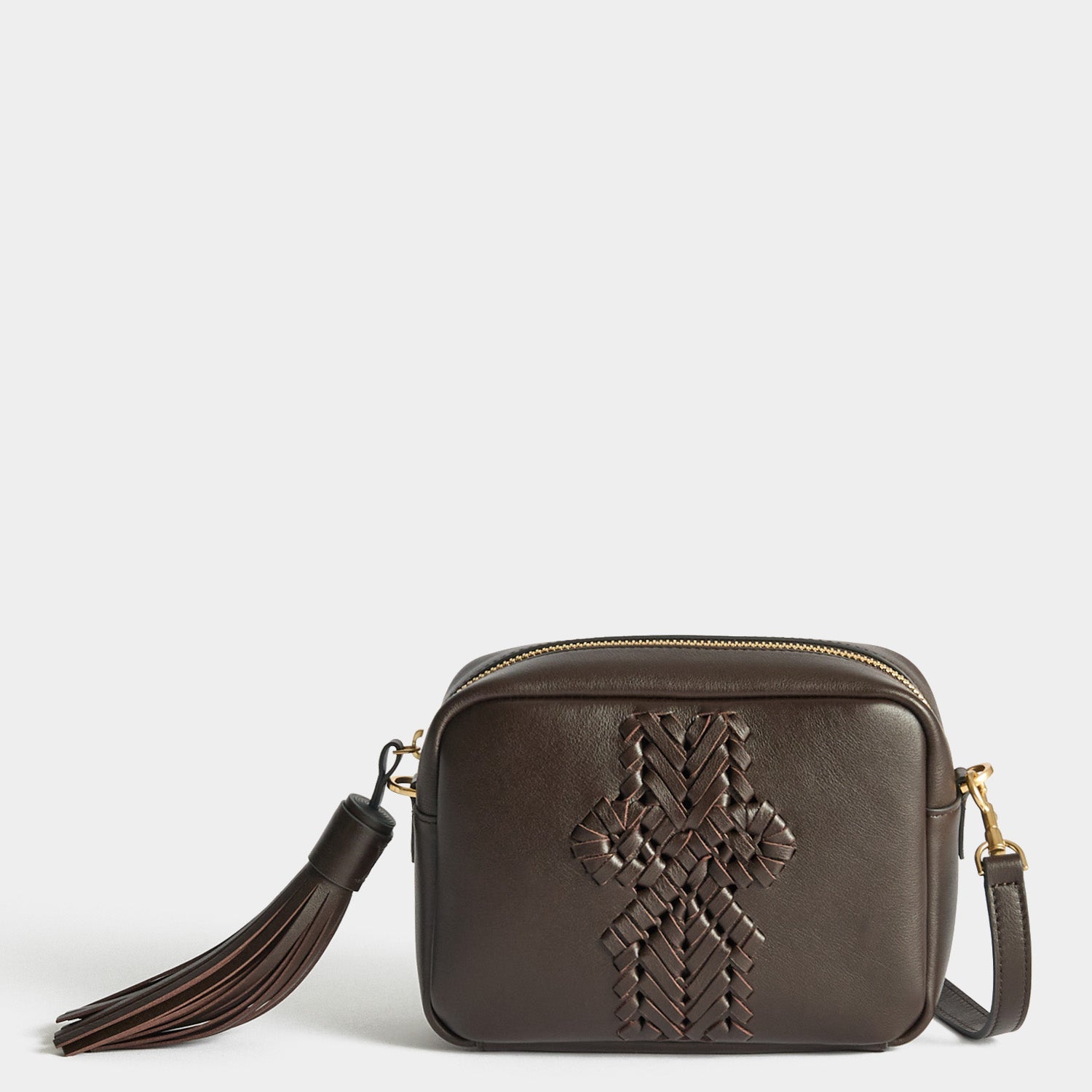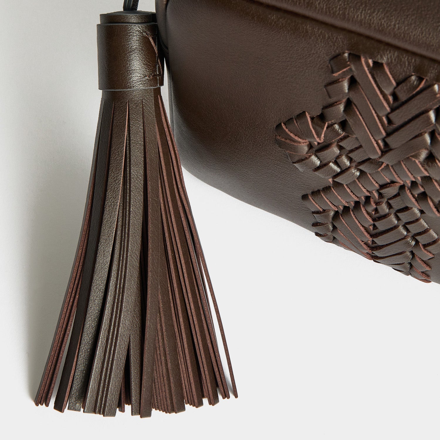 The Neeson Tassel Cross-body will likely become your new favourite bag, thanks to its compact size, deceivingly roomy interior, and extra-special detailing. It's made from coffee capra leather, gilded with gold-tone hardware, and finished with our handwoven bow motif and oversized tassel. Inside, there is ample room for your phone, wallet, and other essentials.