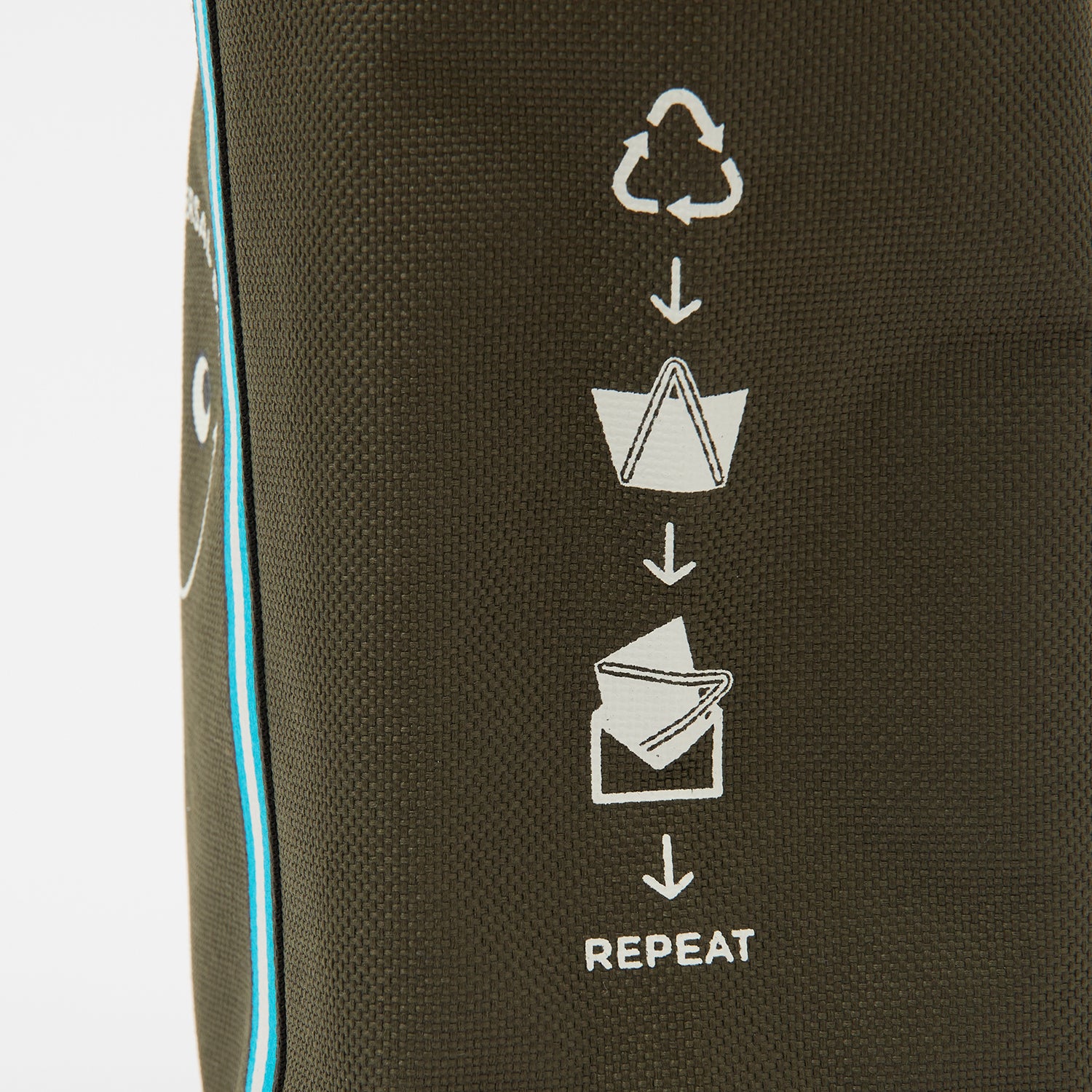 The Universal Bag is the next generation of reusable bag – it tackles single-use plastic, rescuing post-consumer waste from landfill and inspiring a reuse mindset as a more thoughtful purchase. Its recycling mechanism – an innovative built-in returns pouch – prevents contamination and ensures 100% recyclability. It is also made from 100% recycled materials and is guaranteed to carry your shopping for 10 years.